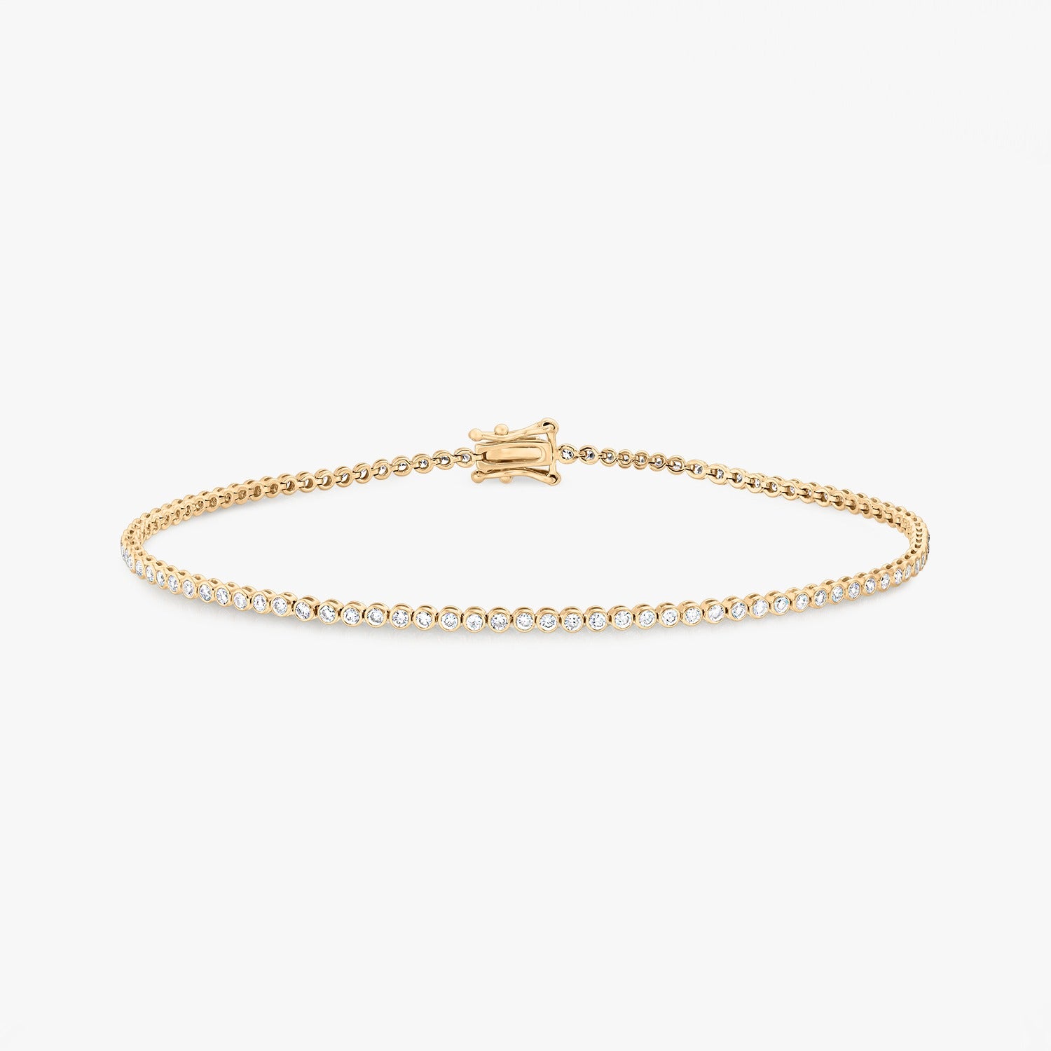 Una delicata variante del classico bracciale tennis, reinterpretata con una sottile linea in oro giallo 14K e diamanti da laboratorio incastonati in montature discrete. Il bracciale emana sottigliezza e raffinatezza, senza perdere presenza. Leggero, comodo ed elegante, questo bracciale è il tipo di gioiello che diventa parte di te.