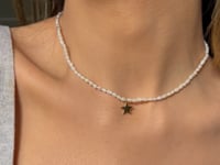 Indossa la tua stella fortunata con questa Collana in argento Tiana Golden - Perle Naturali. Il gioiello ha una lunghezza di 38 - 40 cm e un'altezza di 14 mm. Le perle naturali utilizzate hanno un'altezza di 3 mm, mentre il rivestimento è realizzato in Oro Giallo 14K con uno spessore di 2 micron.